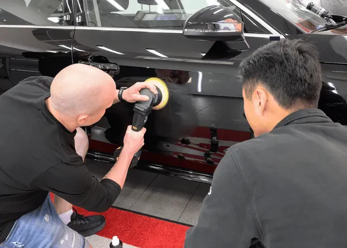 Därefter utförs en anpassad polering av bilen för att uppnå högsta möjliga glans och samtidigt bli av med dina ytliga repor i lacken.